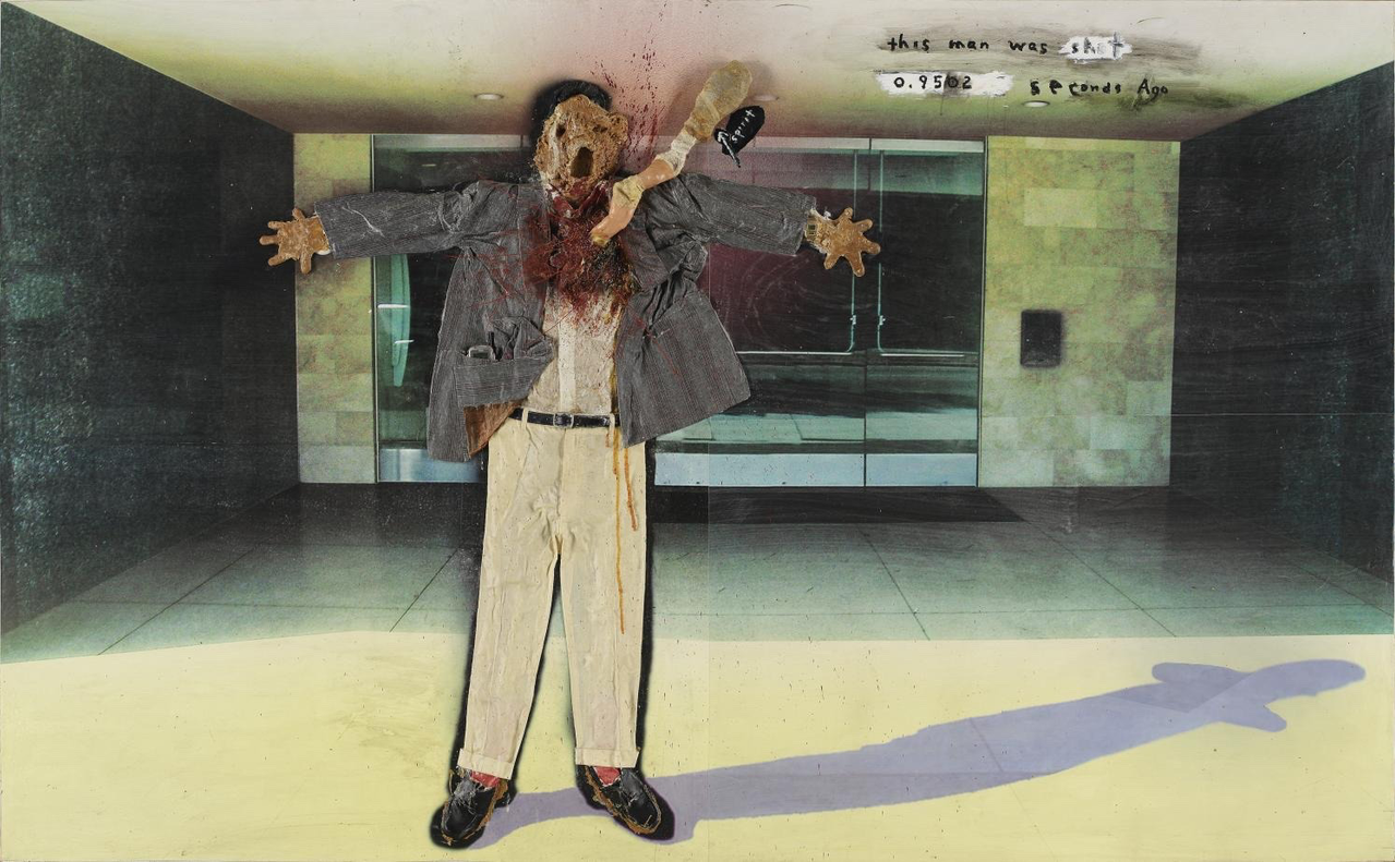 David Lynch // This Man Was Shot 0.9502 Seconds Ago, 2004 // mixed media on panel